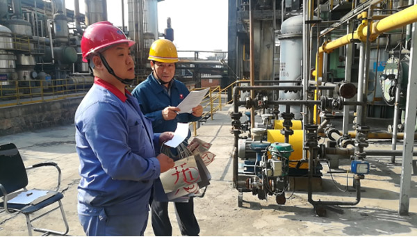 “反应液送出前,现场阀门已经所有确认,反应液分析数据合格,现已切入合格槽。”“预热器走旁通,进出口阀门已关闭,物料已倒空,现可更换视镜!”近日,有机分厂相继在各工序生产现场进行年度实践考试。